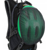 Plecak ma pojemną komorę główną zamykaną na dwa zamki, w której znajdują się dwie siatkowe kieszonki i większa przegroda z gumką. Na przodzie umieszczono mniejszą komorę zamykaną na zamek, a na bokach dwie siatkowe kieszonki na napoje. Dodatkowo, w dolnej kieszonce na zamek schowana jest siateczka do zewnętrznego mocowania kasku.