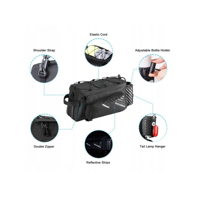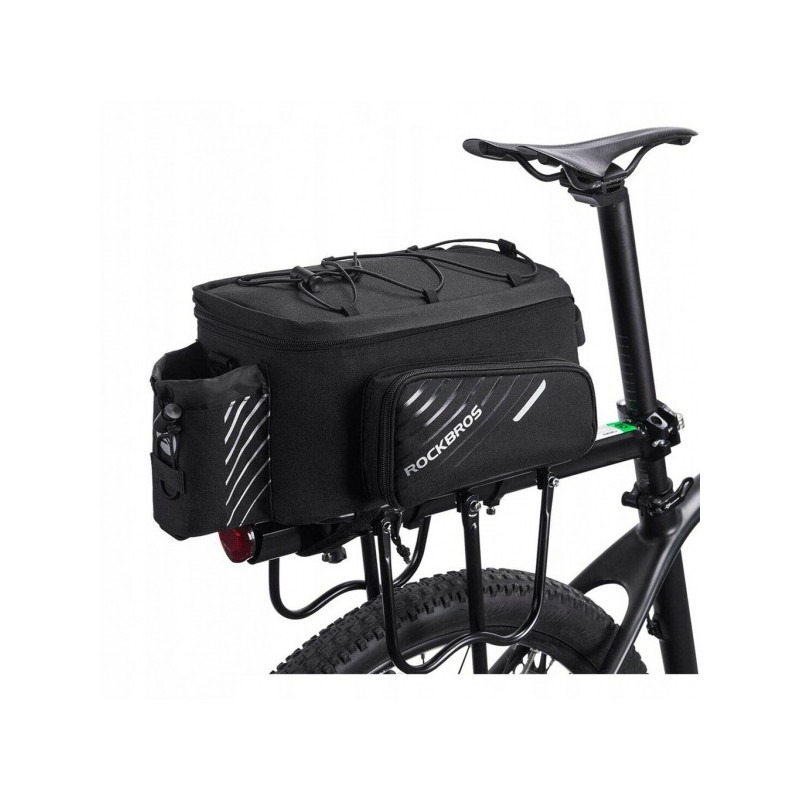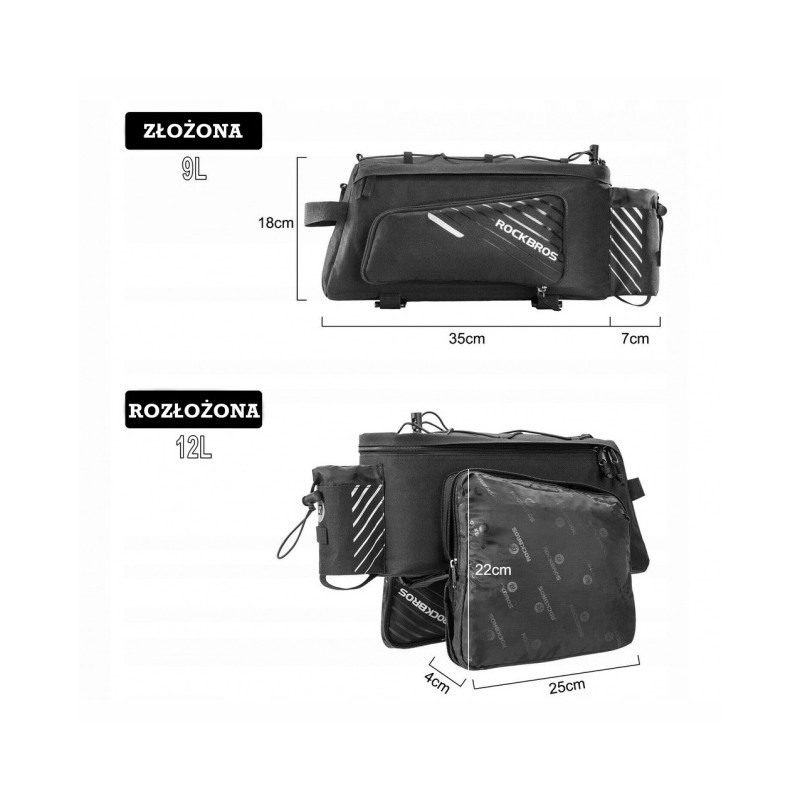 +48500464804Torba rowerowa na bagażnik duża 12L Rockbros A9-BK, pojemna, wodoodporna z uchwytem na bidon.