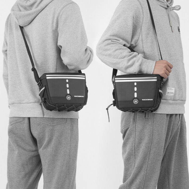 Torba rowerowa pod ramę Rockbros B79. Wodoodporna, pojemna, elegancka. Można montować na kierownicy lub nosić jako torbę naramienną.