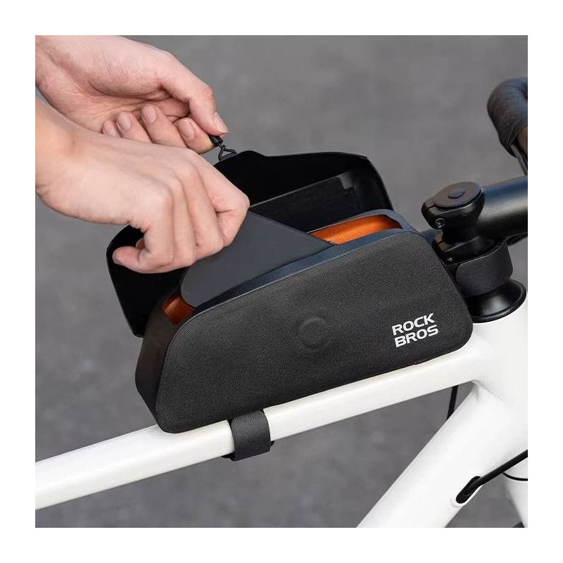 Torba rowerowa pod ramę Rockbros 041B. Wodoodporna, pojemna, elegancka. Można montować na kierownicy, na ramie oraz pod siodłem.