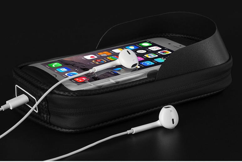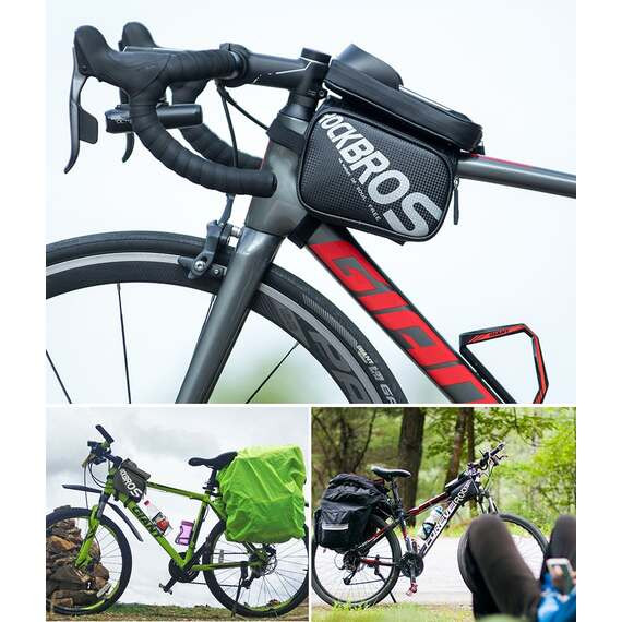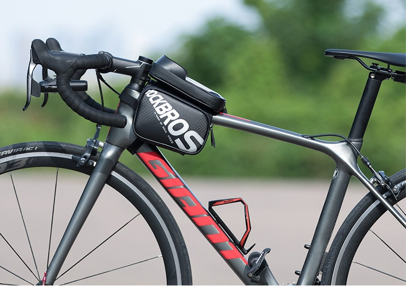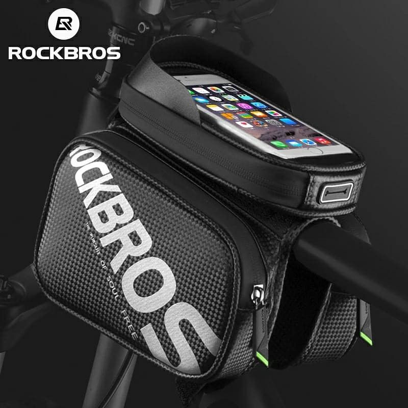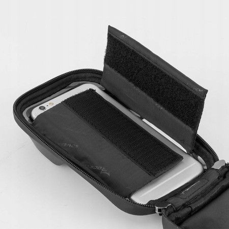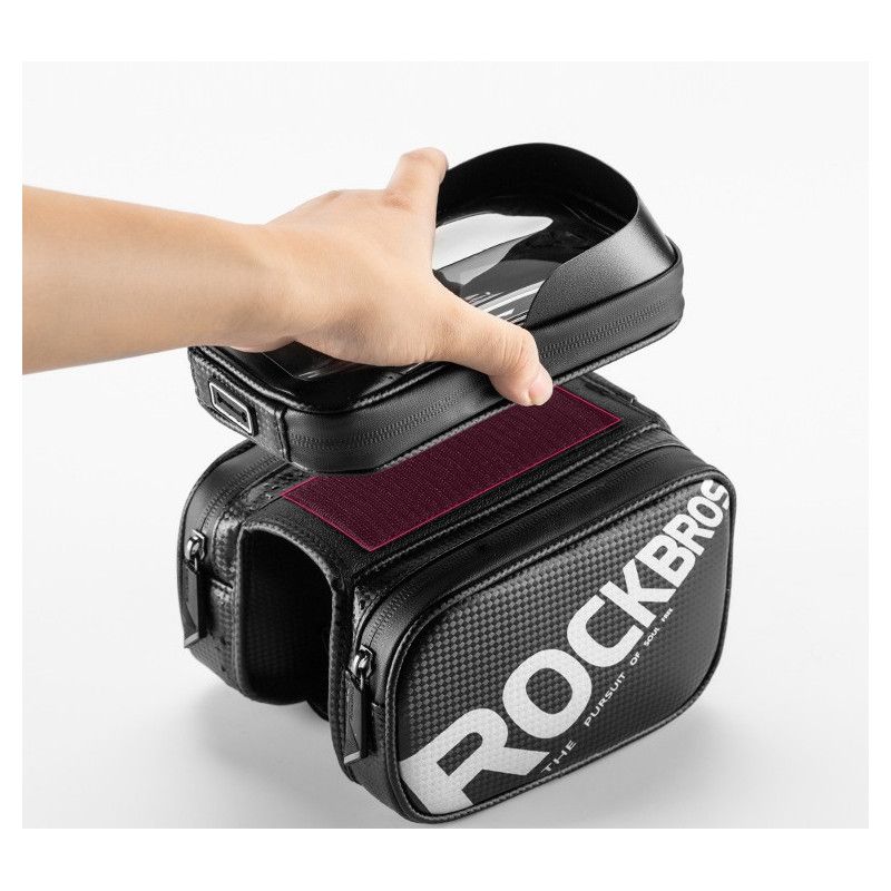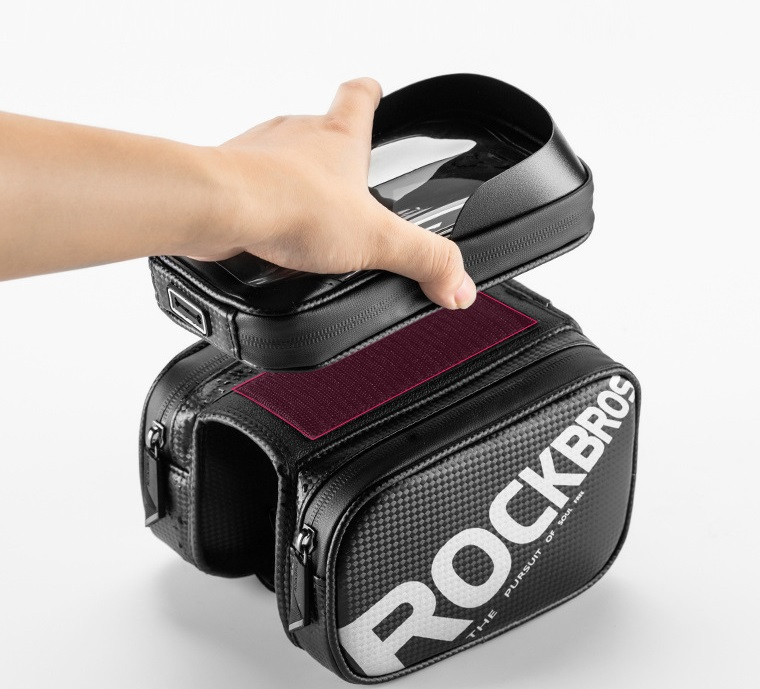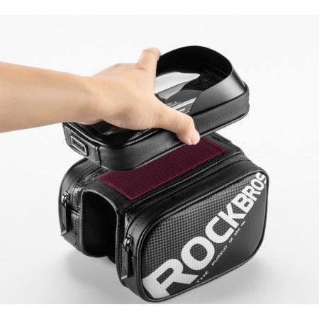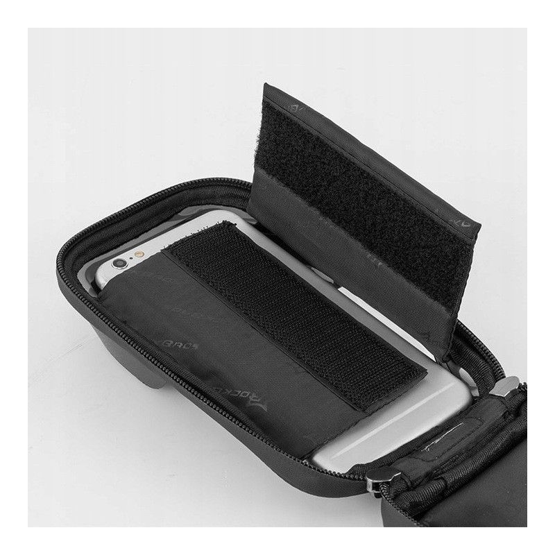 Uchwyt na telefon i torba rowerowa Rockbros 017-3BK wraz z miejscem do przewożenia akcesoriów, dokumentów czy portfela.