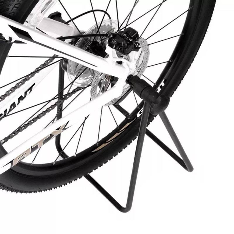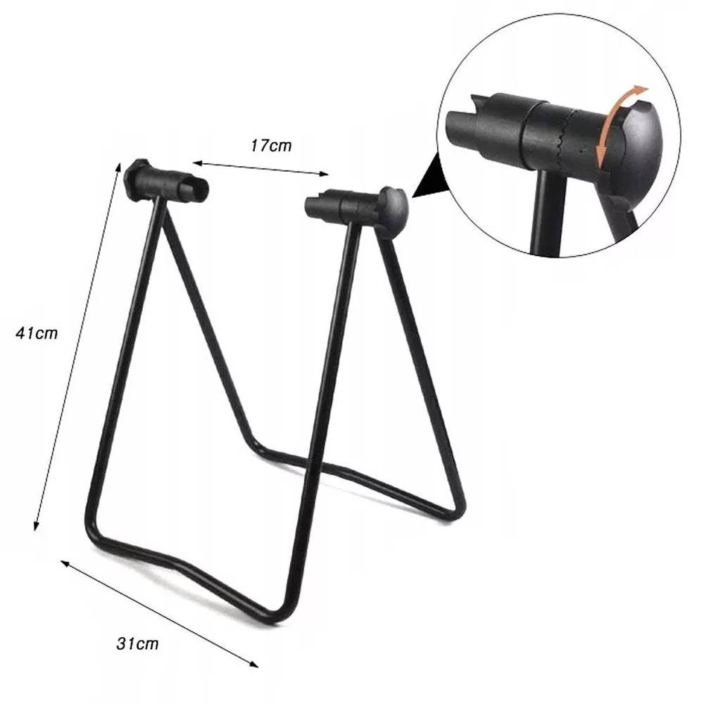 Poręczny lekki stojak do roweru. Umożliwia przechowywanie w pozycji stojącej roweru, który nie posiada zamontowanej stopki (nóżki). Idealny do przeprowadzania drobnych pracy serwisowych czy mycia roweru.