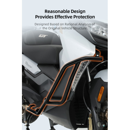 Dla kierowców, którzy traktują swoje maxi-skutery poważnie – LOBOO Crash Bar CHG102BK to must-have w zakresie zabezpieczenia Twojej maszyny przed życiowymi „niespodziankami” na drodze i poza nią.