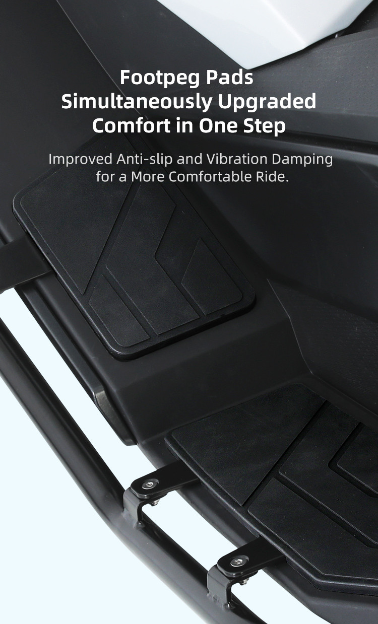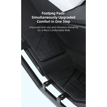 W komplecie znajdziesz podkładki pod stopy o właściwościach antypoślizgowych i tłumiących drgania – to nie tylko zabezpieczenie, ale też komfort jazdy, zwłaszcza przy manewrowaniu w mieście lub na nierównych nawierzchniach.