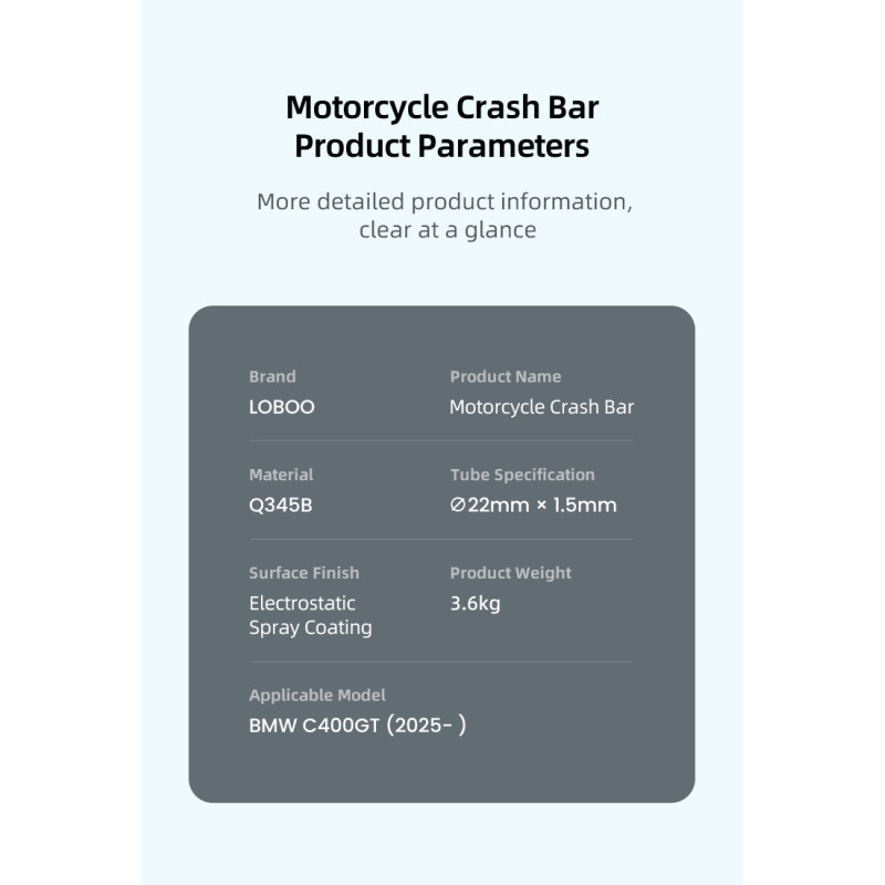 +48500464804LOBOO Crash Bar CHG102BK – stalowa ochrona Twojego BMW C400GT 2025+