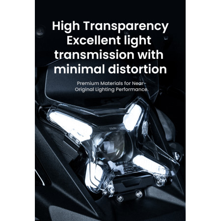 Osłona wykonana jest z poliwęglanu (PC) o wysokiej wytrzymałości — materiału znacznie trwalszego i odporniejszego na uderzenia niż zwykłe pleksi. Dzięki temu nawet drobne kamienie czy odłamki nawierzchni nie uszkodzą reflektora, co daje Ci spokój ducha w trasie.