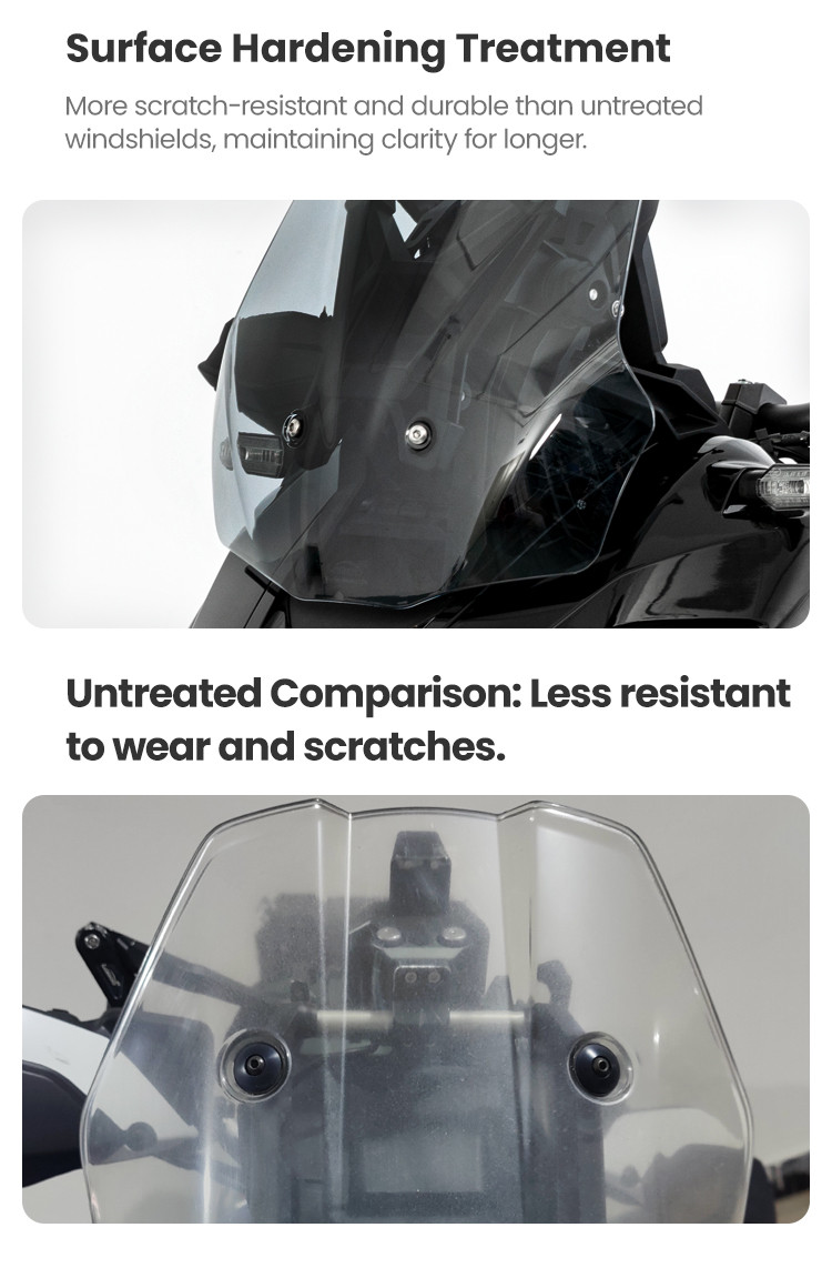 Szyba CFD511 pasuje dokładnie do punktów montażowych ADV350 2025+, więc montaż jest bezinwazyjny i szybki – idealne rozwiązanie dla każdego, kto ceni praktyczne i trwałe modyfikacje.