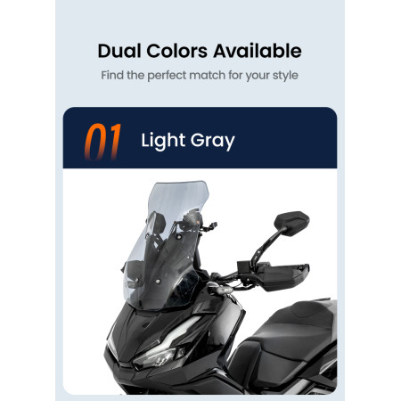 Produkt dostępny w wariantach przezroczystym i jasnoszarym (light gray) – możesz wybrać ten, który najlepiej pasuje do stylu ADV350 i Twojej jazdy.
