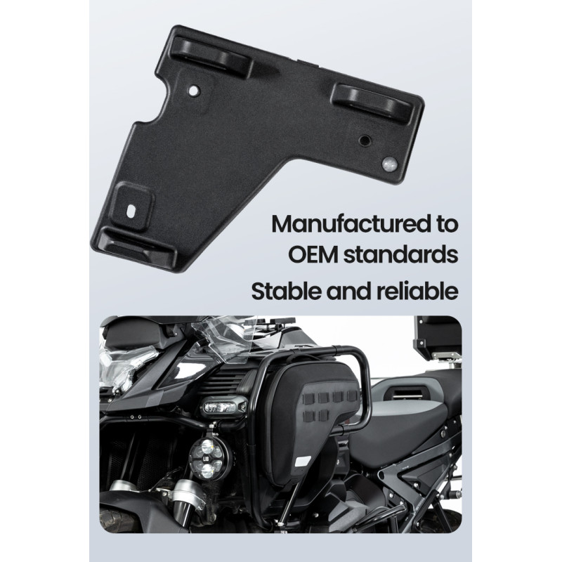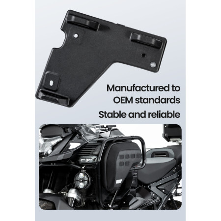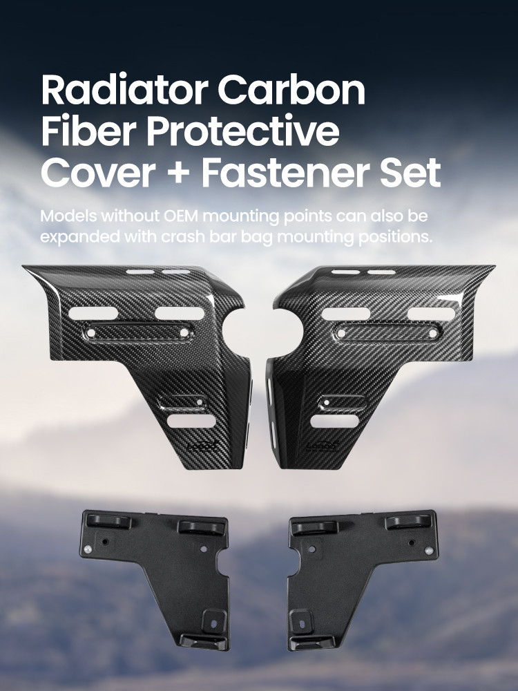 Wersja CRCB151 zawiera zaawansowane mocowania z tworzywa technicznego, które pozwalają nie tylko zabezpieczyć chłodnice przed kamieniami i uderzeniami, ale także rozszerzyć możliwości mocowania sakw lub toreb przy crash barach — idealne, gdy planujesz wyprawę