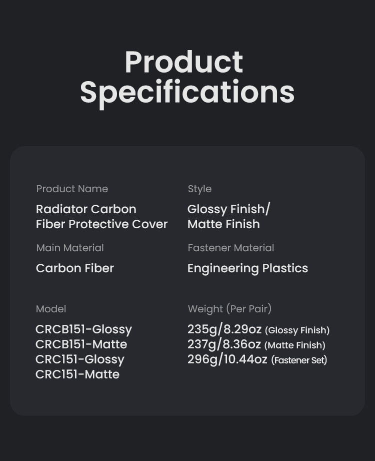 Wersja CRCB151 zawiera zaawansowane mocowania z tworzywa technicznego, które pozwalają nie tylko zabezpieczyć chłodnice przed kamieniami i uderzeniami, ale także rozszerzyć możliwości mocowania sakw lub toreb przy crash barach — idealne, gdy planujesz wyprawę