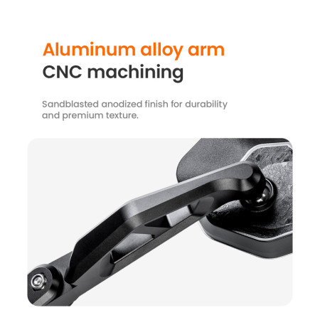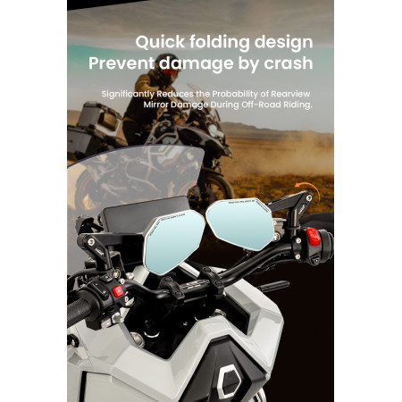 Podczas jazdy w terenie lub manewrowania w ciasnych miejscach łatwo zahaczyć o przeszkodę. Dzięki składanej budowie lusterka RM03 możesz złożyć szybko w stronę motocykla — co redukuje ryzyko złamań i uszkodzeń przy upadkach lub wąskich passage’ach.