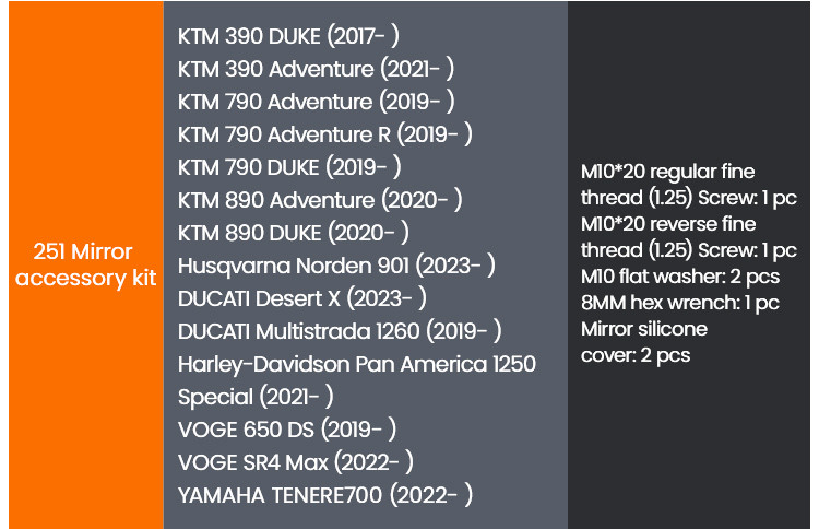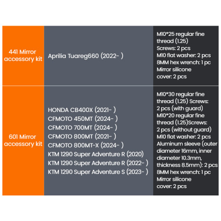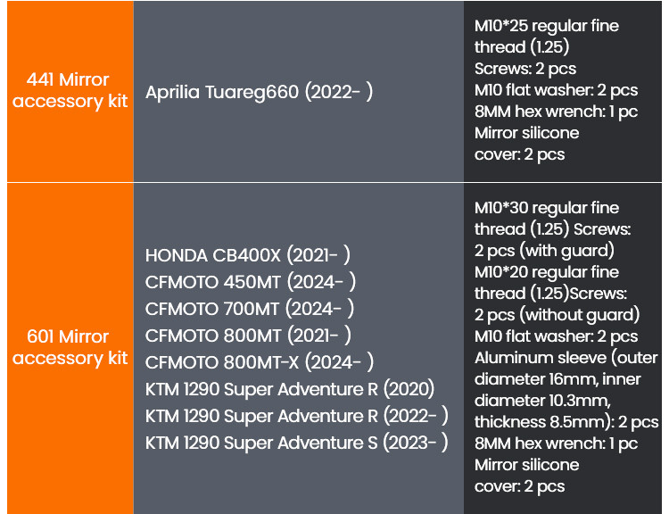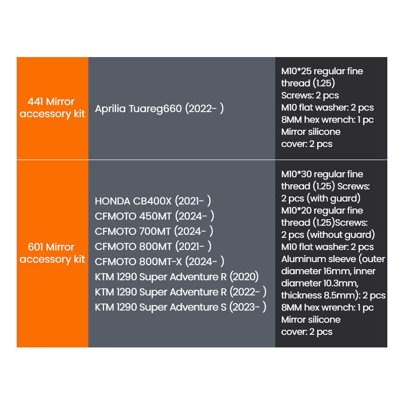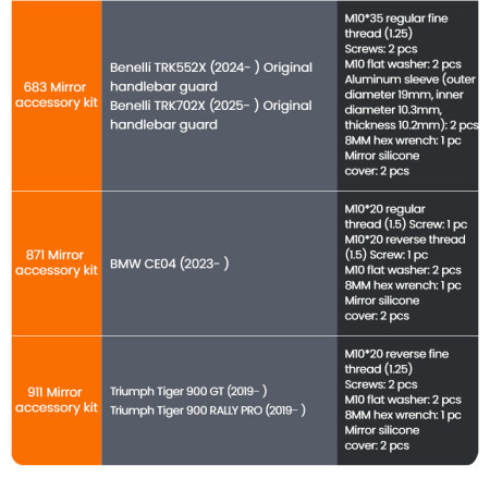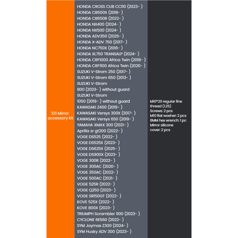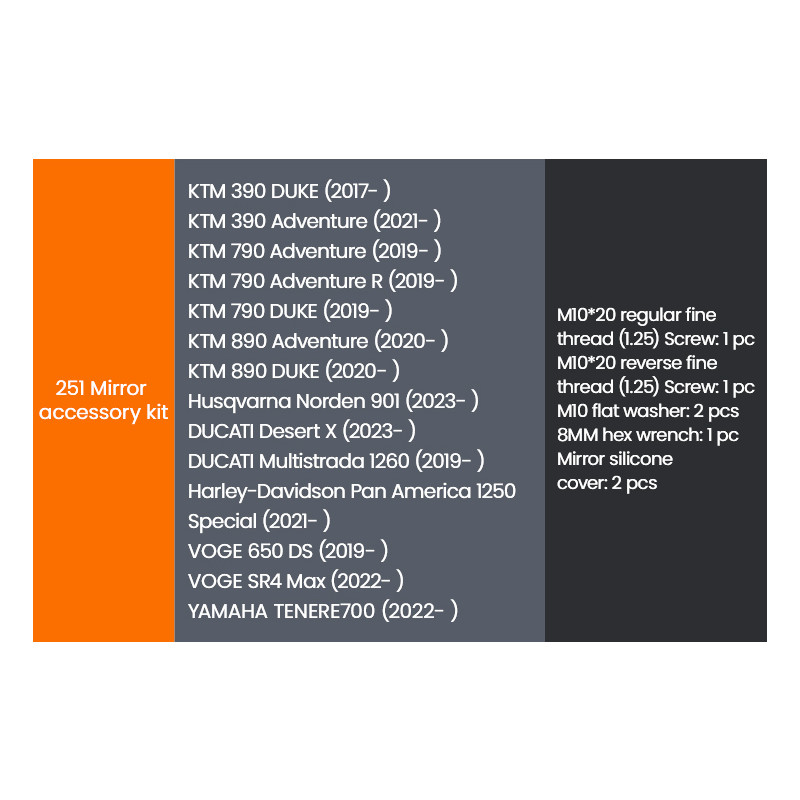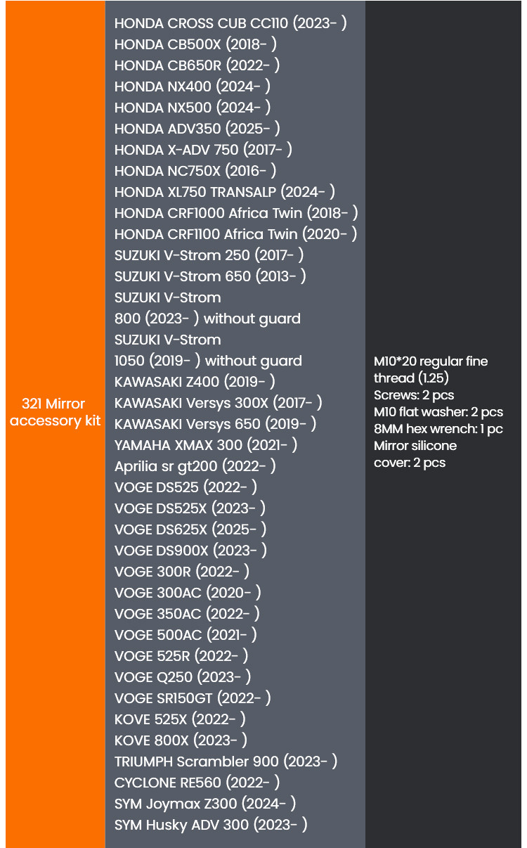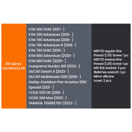 Lusterka RM03 wyróżniają się geometrycznym, dynamicznym kształtem — to coś więcej niż zwykłe odbicia zza kierownicy. Ich agresywna sylwetka idealnie pasuje do nowoczesnych motocykli ADV i naked, podkreślając ich charakter i styl.