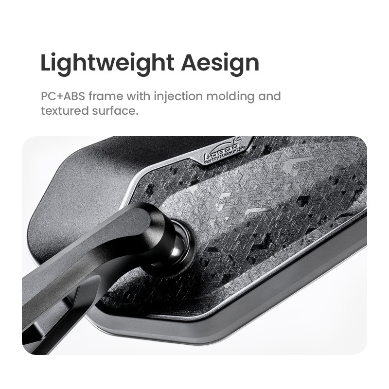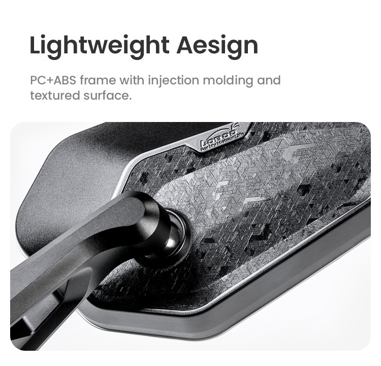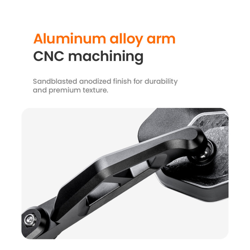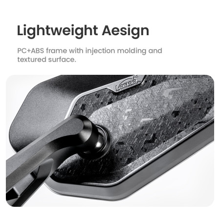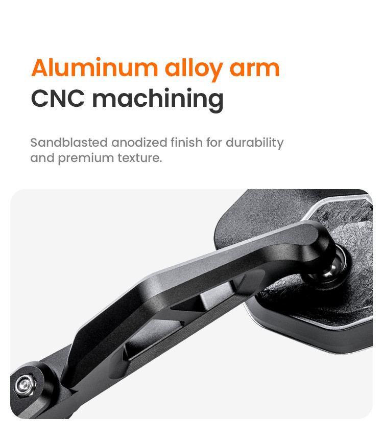Konstrukcja wykonana jest z CNC frezowanego aluminium, co zapewnia sztywność, odporność na drgania i premium-wykończenie. Lusterka są trwałe, stabilne przy prędkościach autostradowych i świetnie komponują się z maszynami, które lubią ostrą linię designu. Panel tylny wykonany jest z PC+ ABS dla jeszcze większego obniżenia wagi.