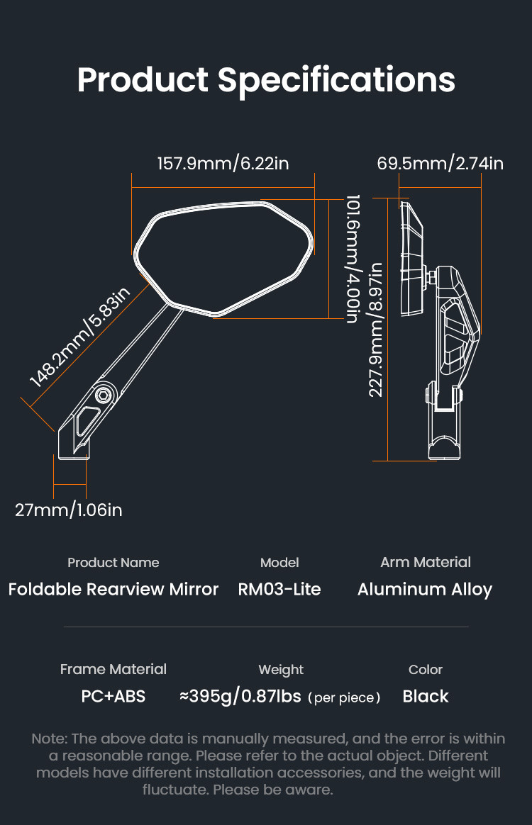 LOBOO RM03 Lite – składane, wysokiej klasy lusterka motocyklowe