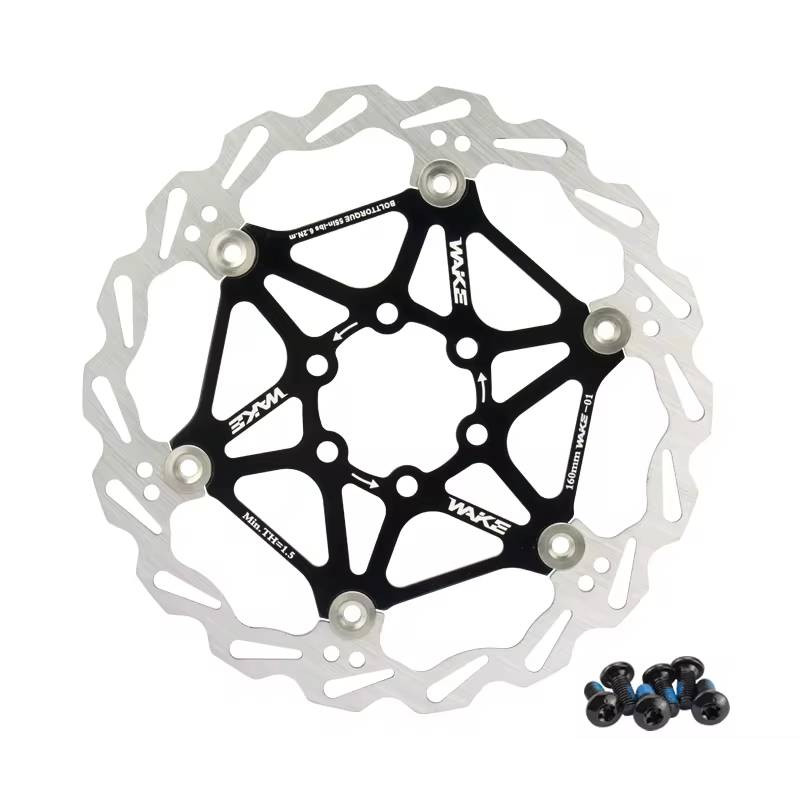 Zwiększ bezpieczeństwo i wydajność swojego roweru górskiego (MTB) dzięki pływającej tarczy hamulcowej od WAKE. To solidna tarcza wykonana z połączenia stali nierdzewnej i stopu aluminium, zapewniająca doskonałe właściwości hamowania zarówno na suchej, jak i mokrej nawierzchni. Dzięki innowacyjnej konstrukcji pływającej, tarcza gwarantuje stabilność i odporność na odkształcenia termiczne, nawet podczas intensywnego użytkowania.