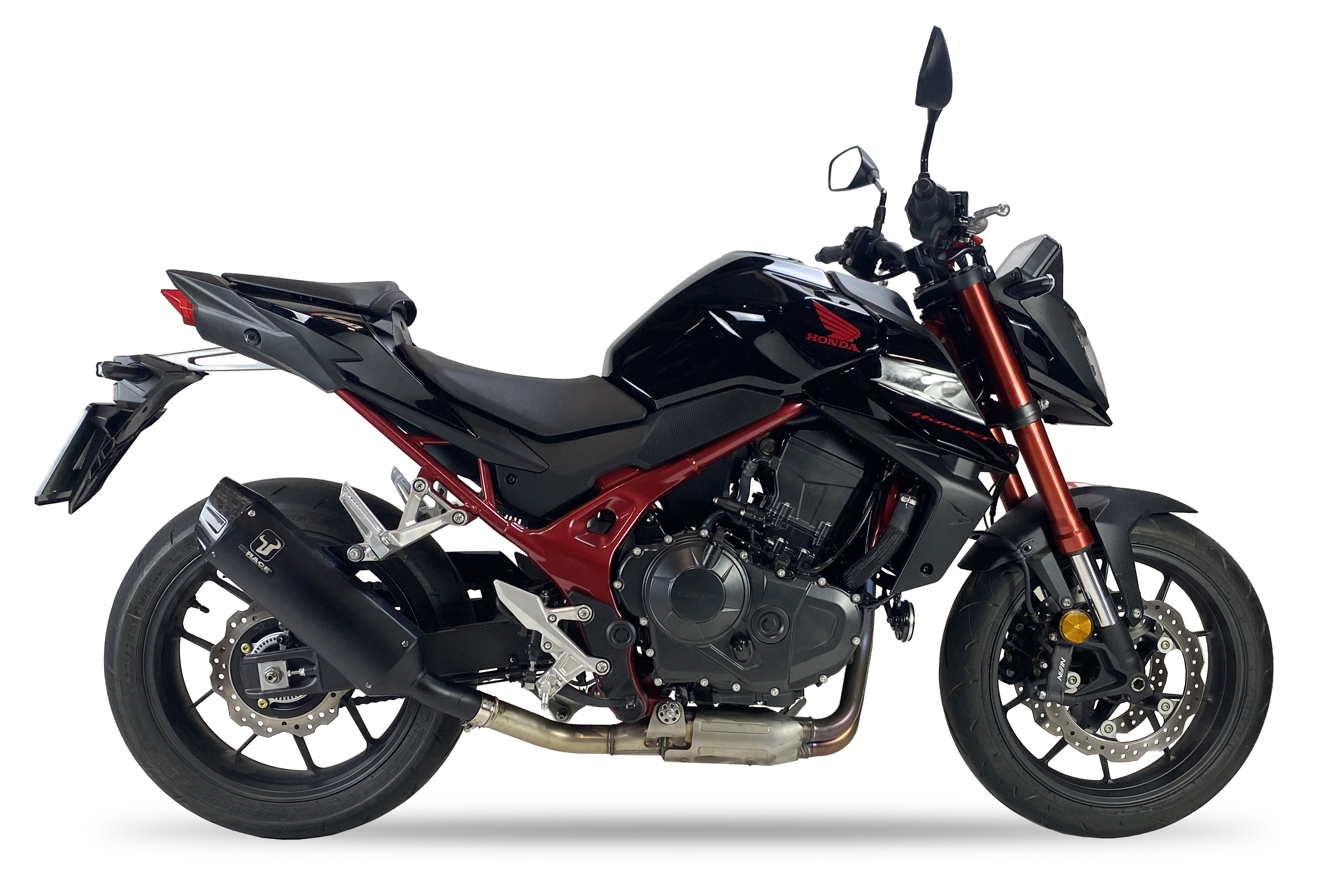 Wybierz IXRACE BC6003SBC Desert Black i nadaj swojej Honda CB 750 HORNET 2025 sportowy styl oraz agresywne brzmienie, jednocześnie zachowując homologację drogową.