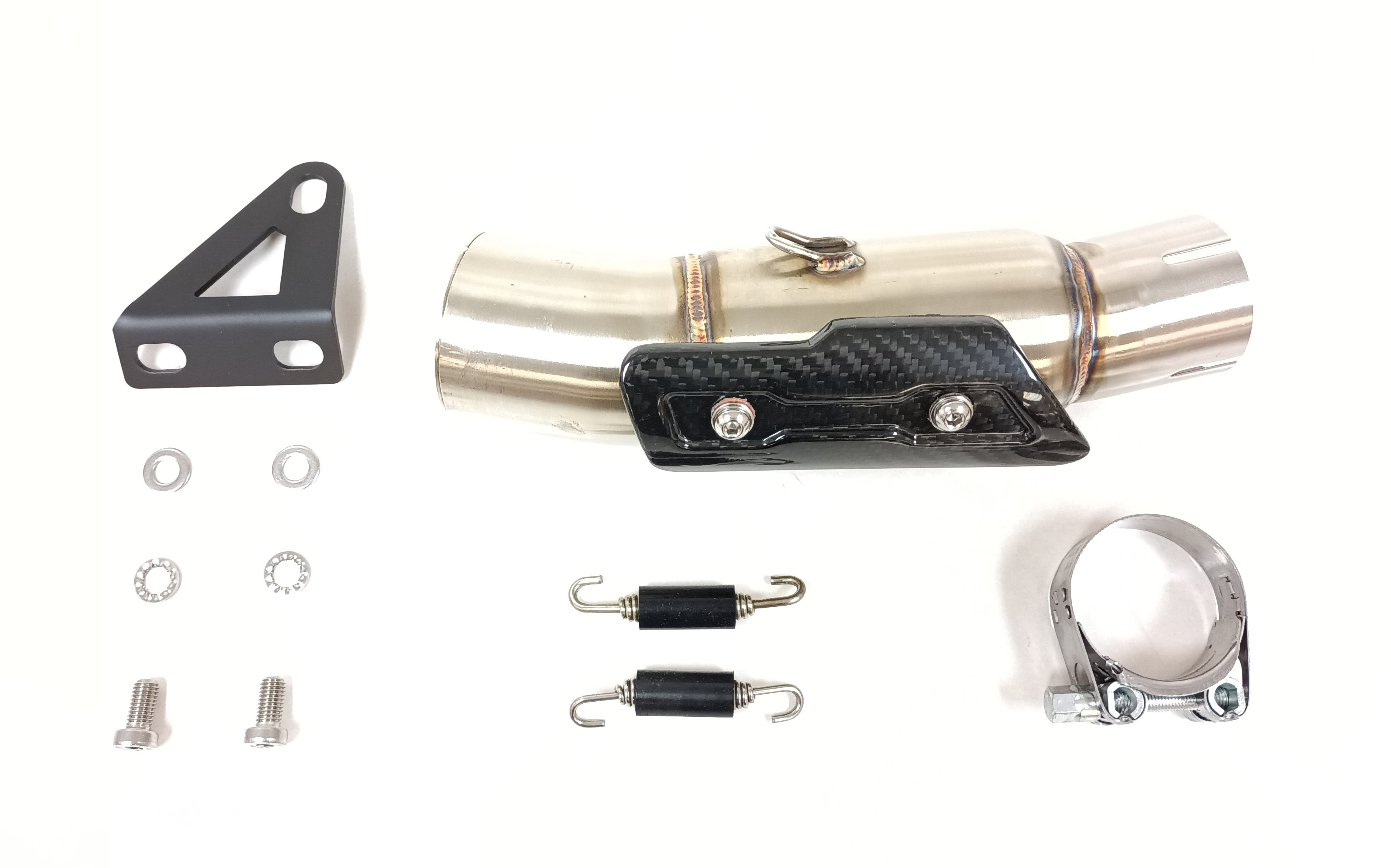 IXRACE MK2 Exhaust for Honda CB 750 Hornet to sportowy, homologowany tłumik Slip-On zaprojektowany dla HONDA CB 750 Hornet 2023-24 (RH12). Wykonany z lekkiej stali nierdzewnej AISI 304 z opcjonalnymi elementami karbonowymi w stylu GP, oferuje głębsze, bardziej dynamiczne brzmienie oraz nowoczesny, koniczny design, który podkreśla sportowy charakter motocykla. Produkt posiada homologację EURO 5+, dzięki czemu jest dopuszczony do jazdy po drogach publicznych w UE.