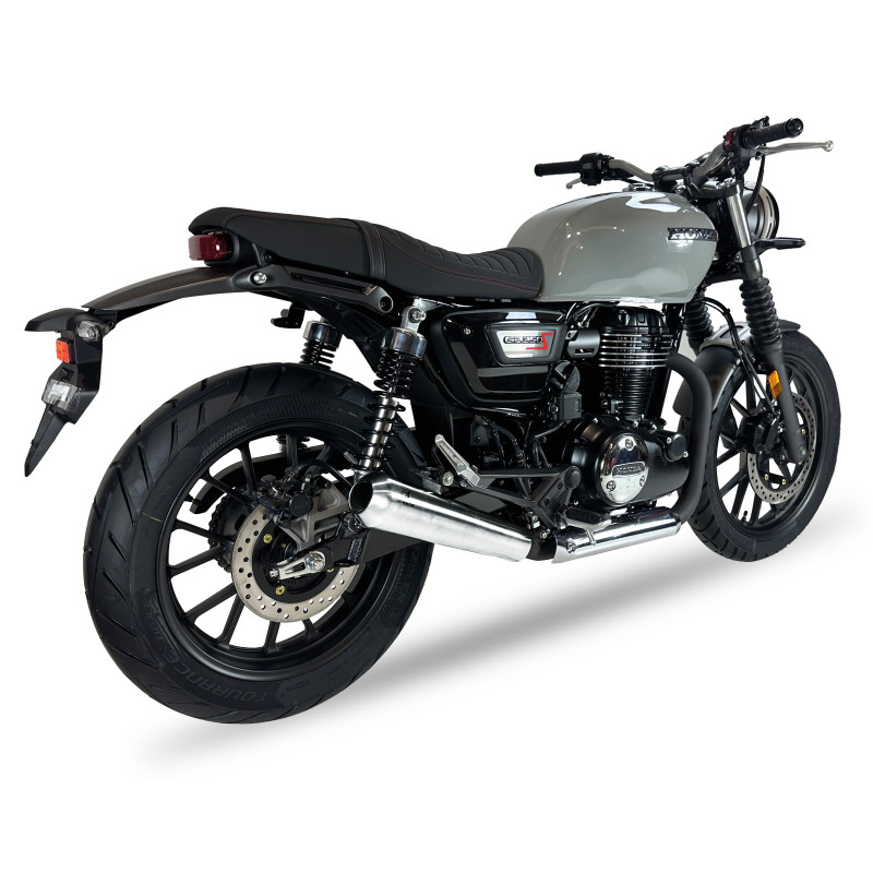 Dzięki precyzyjnemu wykonaniu oraz zoptymalizowanej geometrii wewnętrznej, tłumik IXRACE zapewnia bardziej otwarty, sportowy dźwięk oraz lepszy przepływ spalin, co wpływa na wyraźniejszy charakter jazdy i większe wrażenia z jazdy. Jego nowoczesny, kompaktowy design doskonale komponuje się z klasycznym, retro-sportowym stylem modelu GB350 S, podkreślając jednocześnie agresywny wygląd i indywidualność motocykla.