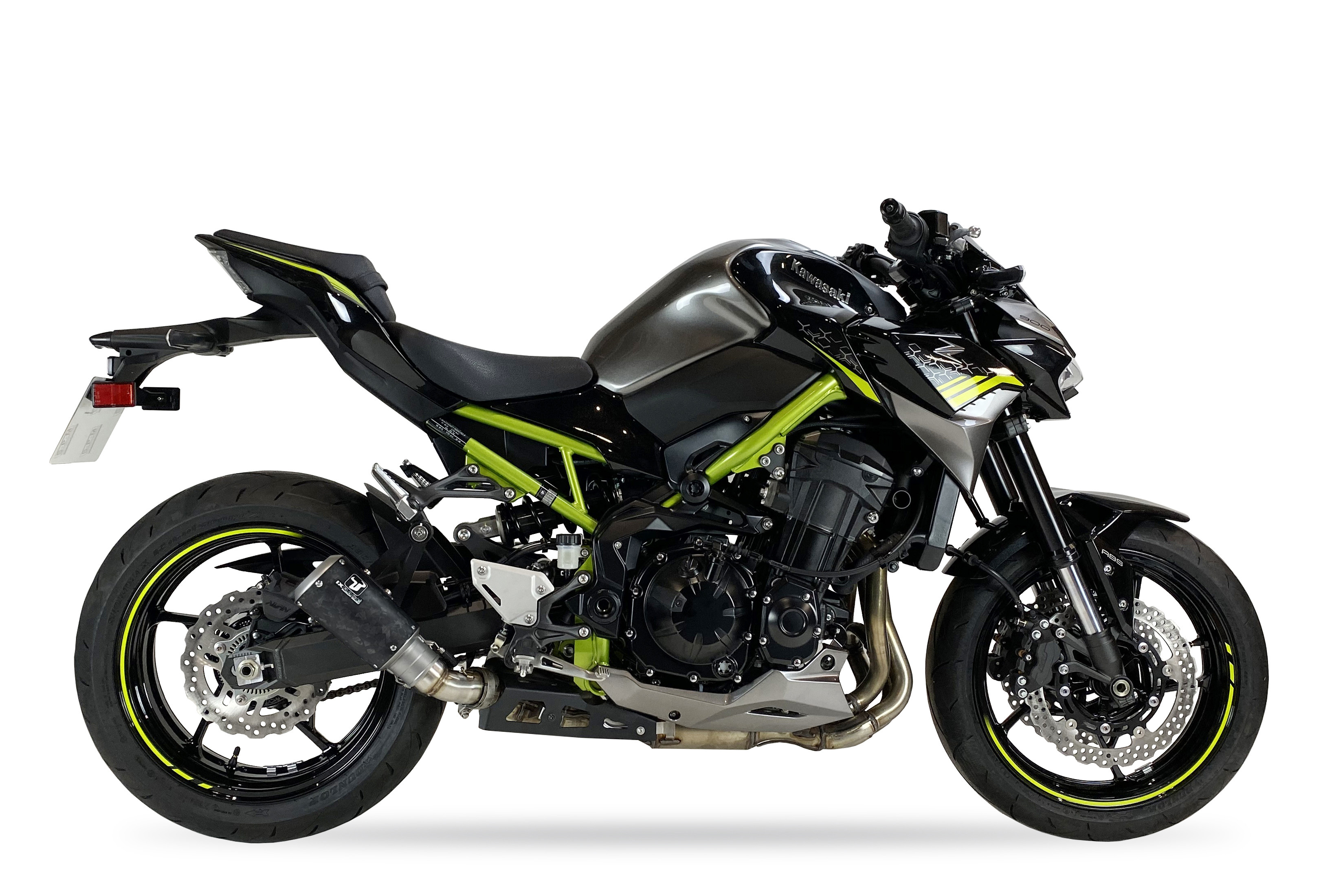 KAWASAKI Z900 – MK2 Black IXRACE Silencer to sportowy, homologowany tłumik wydechowy typu Slip-On MK2C Carbon Forged zaprojektowany dla KAWASAKI Z 900 (92 kW) 2020-2024 (ZR900F). Wykonany z lekkiej stali nierdzewnej AISI 304 i korpusu z carbon forged, oferuje głębsze i bardziej dynamiczne brzmienie oraz nowoczesny, koniczny wygląd inspirowany stylistyką GP. Dzięki homologacji Euro 4/Euro 5 jest dopuszczony do legalnej jazdy drogowej i stanowi stylową, sportową modernizację motocykla.