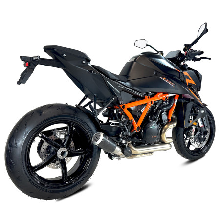 IXRACE AM3283CX to wysokiej klasy tłumik wydechowy typu Slip-On zaprojektowany specjalnie do motocykla KTM 1290 SUPER DUKE R z lat 2020-2023. Model w wersji MK2C Carbon Forged łączy nowoczesny design, precyzję wykonania oraz sportowe brzmienie, które doskonale podkreśla charakter silnika V-Twin KTM.