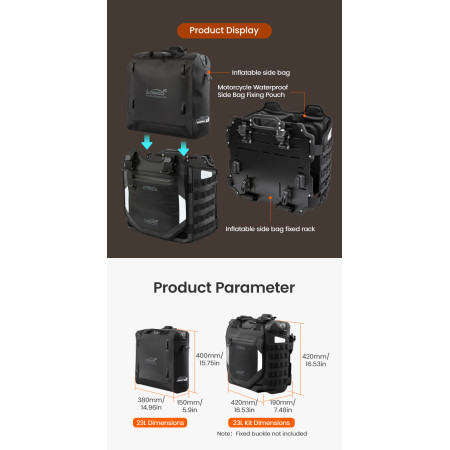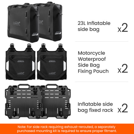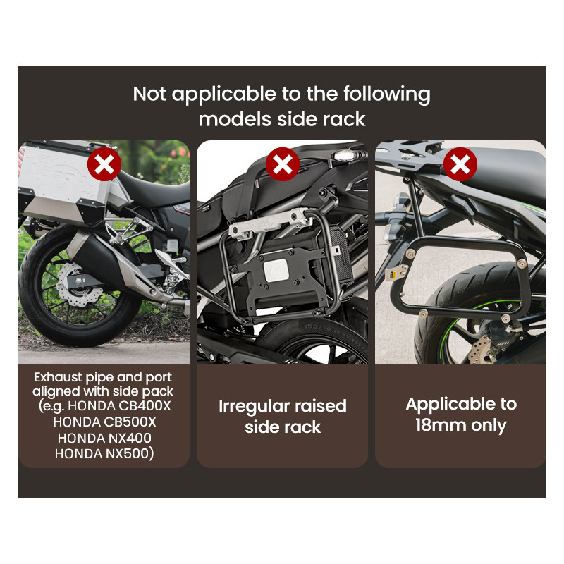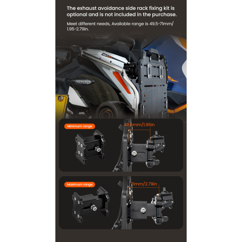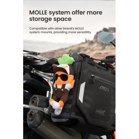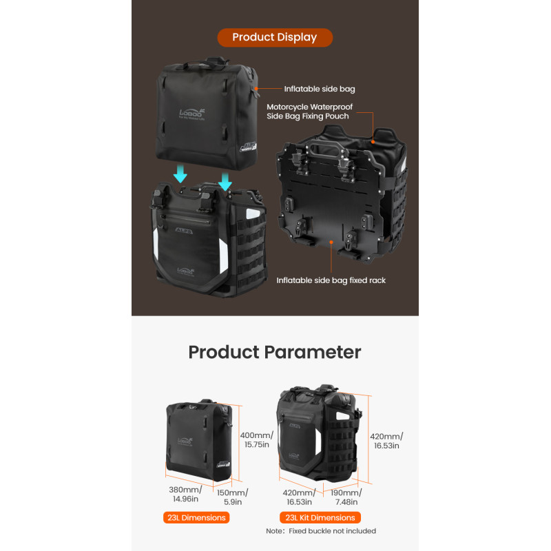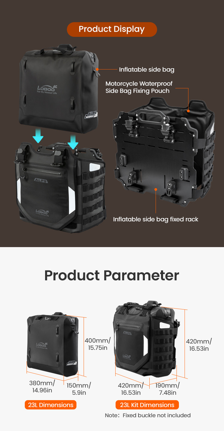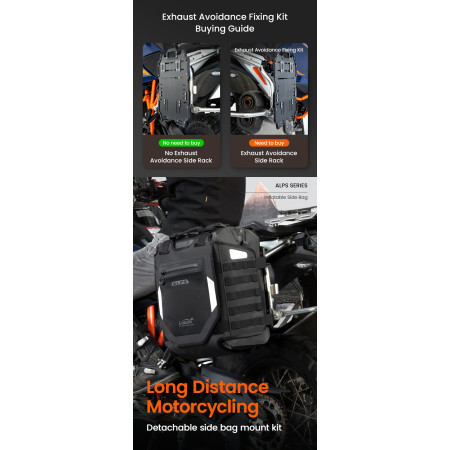 Regulowana struktura szybkiego montażu: Zaprojektowany z myślą o kompatybilności z bagażnikami serii LOBOO TIBET i PIKE TRACKER, a także oryginalnymi bagażnikami bocznymi BMW.