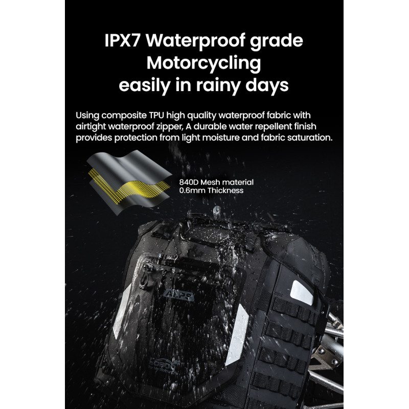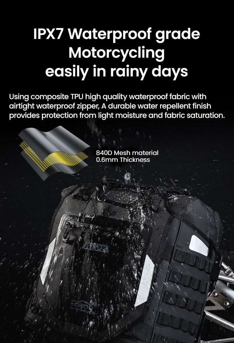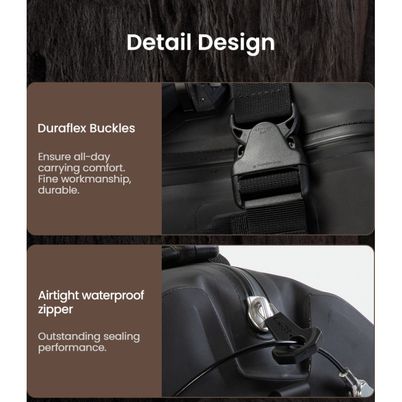 Cechy wodoodporności i zabezpieczenia przed kradzieżą: Wykonana z wodoodpornej tkaniny kompozytowej TPU z certyfikatem IPX7 i wodoodpornymi zamkami błyskawicznymi, dzięki czemu sprzęt pozostaje suchy nawet podczas ulewnego deszczu. Zintegrowany system antykradzieżowy zapewnia dodatkową warstwę bezpieczeństwa.