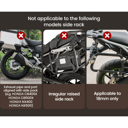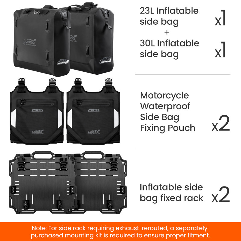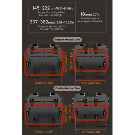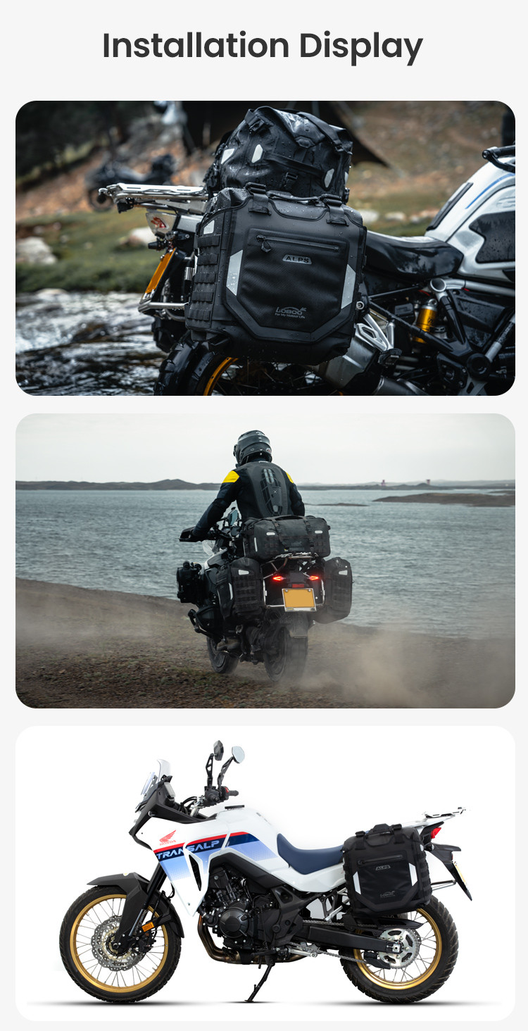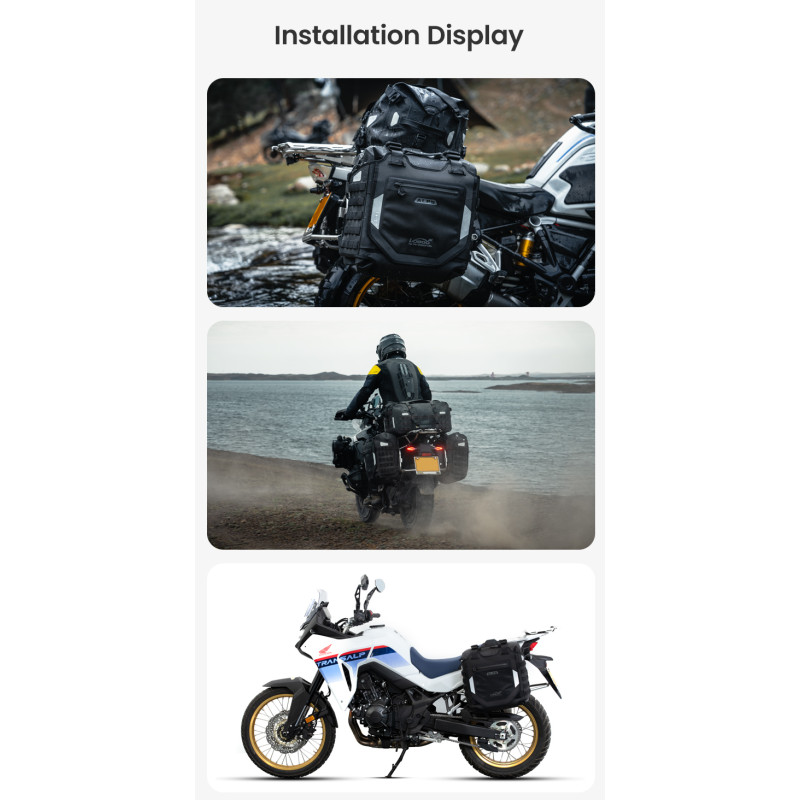 Regulowana struktura szybkiego montażu: Zaprojektowany z myślą o kompatybilności z bagażnikami serii LOBOO TIBET i PIKE TRACKER, a także oryginalnymi bagażnikami bocznymi BMW.