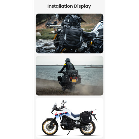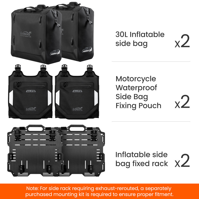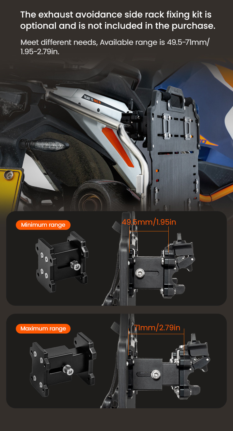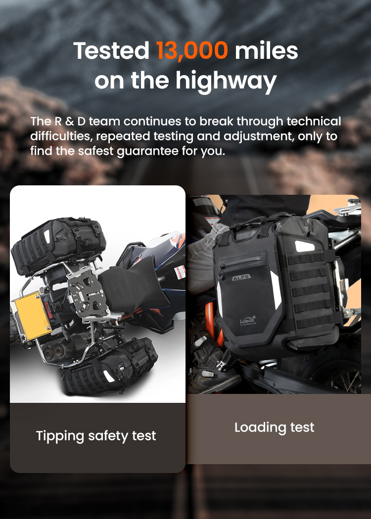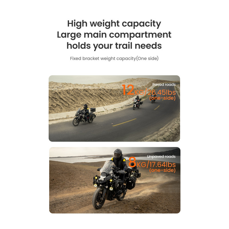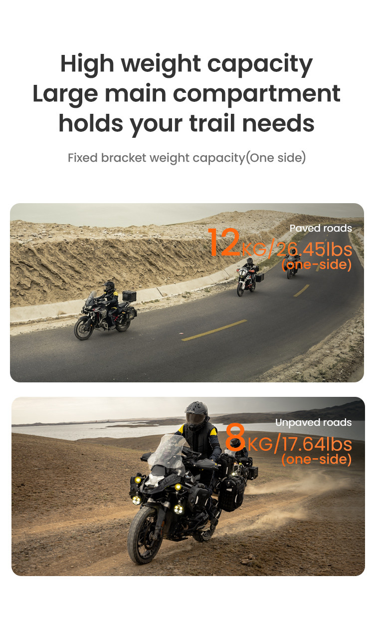 Regulowana struktura szybkiego montażu: Zaprojektowany z myślą o kompatybilności z bagażnikami serii LOBOO TIBET i PIKE TRACKER, a także oryginalnymi bagażnikami bocznymi BMW.