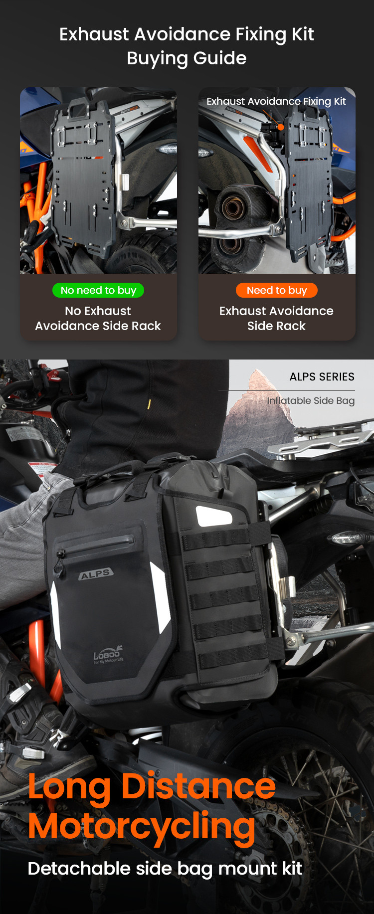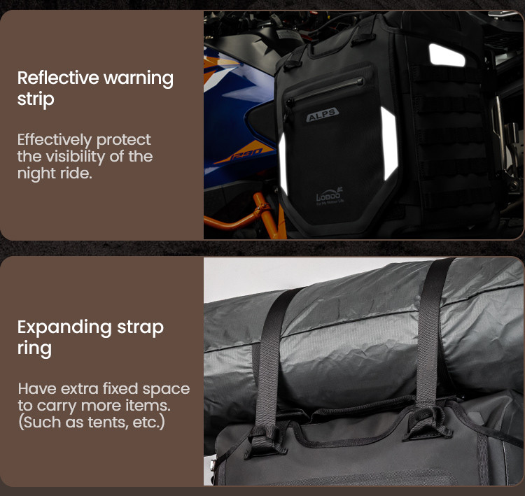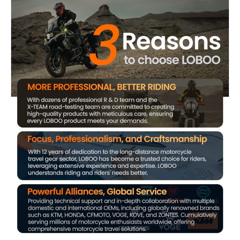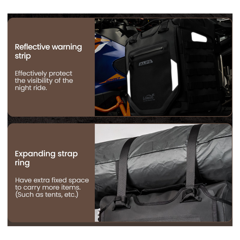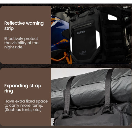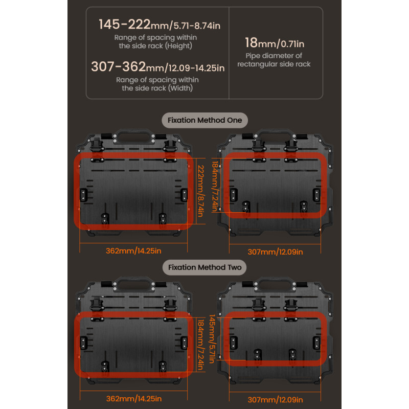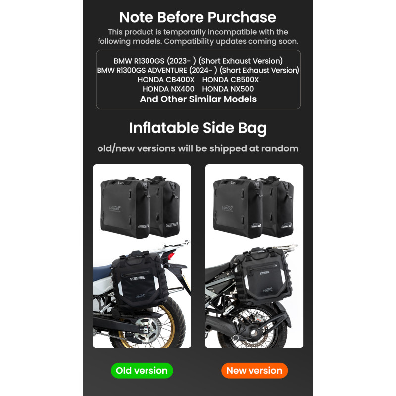 Regulowana struktura szybkiego montażu: Zaprojektowany z myślą o kompatybilności z bagażnikami serii LOBOO TIBET i PIKE TRACKER, a także oryginalnymi bagażnikami bocznymi BMW.