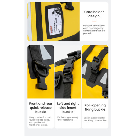 ✅ Bezpieczne Zamknięcie: Zapomnij o przeciekających zamkach! Nasza torba ma magnetyczne zamknięcie, które w połączeniu z systemem trzech zwojów i dwóch klamer zapewnia hermetyczne uszczelnienie. Dodatkowo, przedni zawór do uwalniania powietrza pozwala na skompresowanie bagażu, co ułatwia mocowanie i zwiększa bezpieczeństwo.
