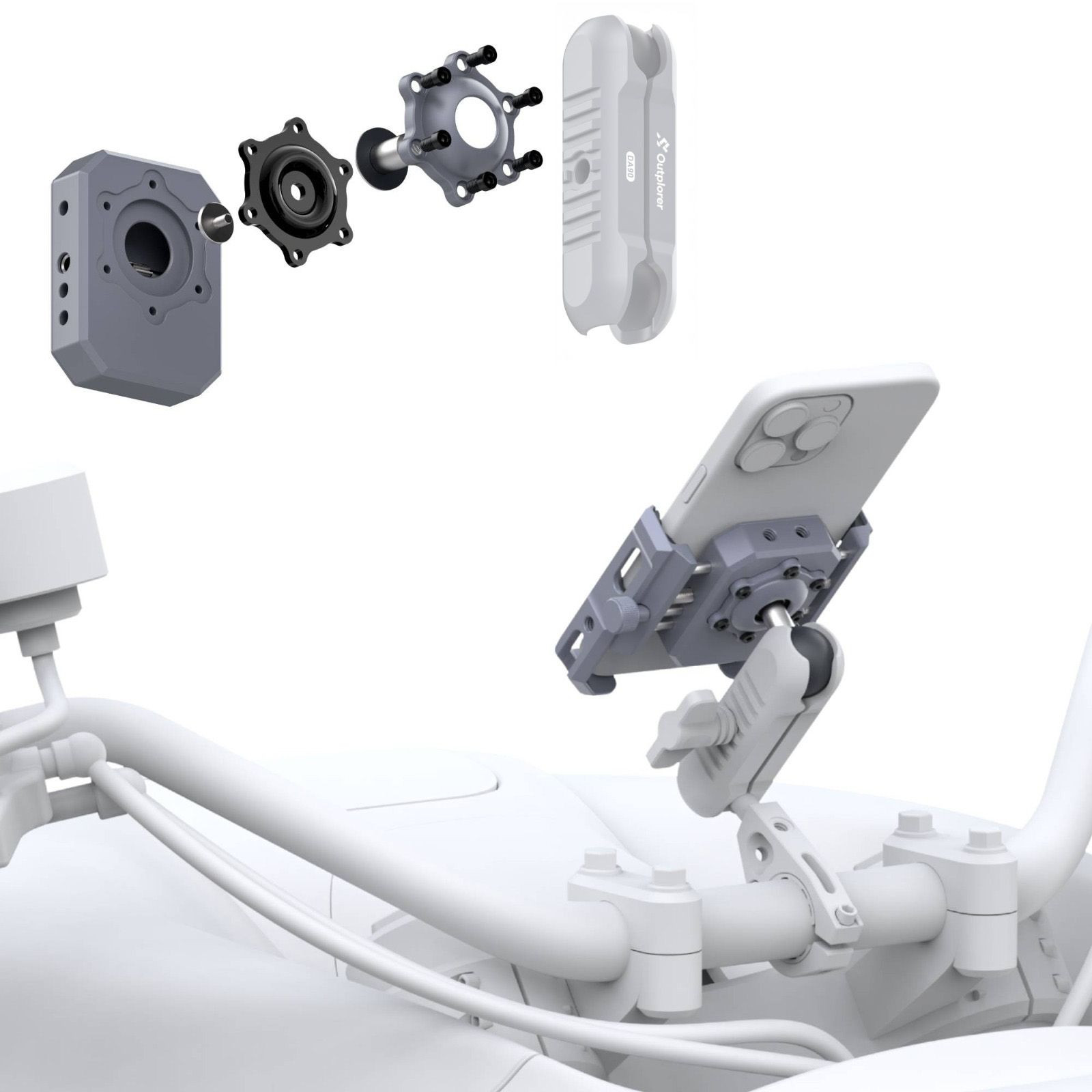 Outplorer oferuje modularną konstrukcję, która umożliwia dostosowanie uchwytu do wielu scenariuszy montażu i typów urządzeń. Wyposażony jest w: