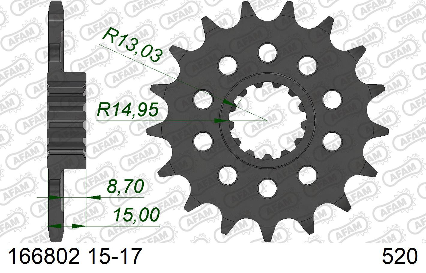 AFAM Zębatka przednia do łańcucha 520 kod 166802-16