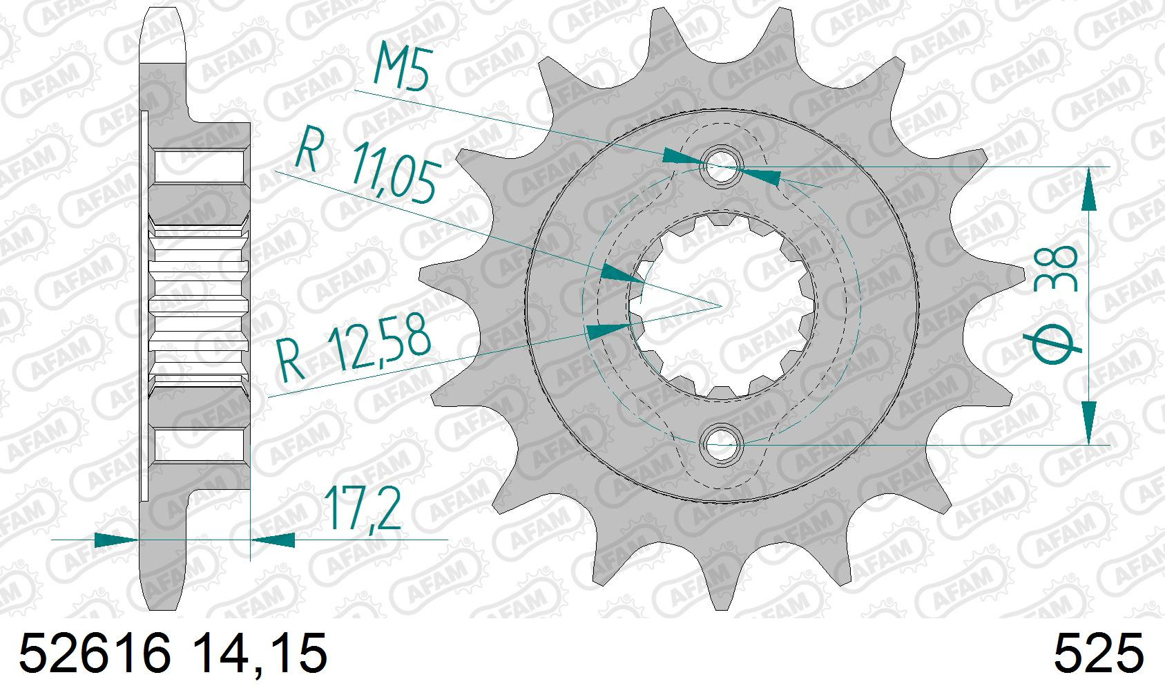 AFAM Zębatka przednia do łańcucha 525 kod 52616-15
