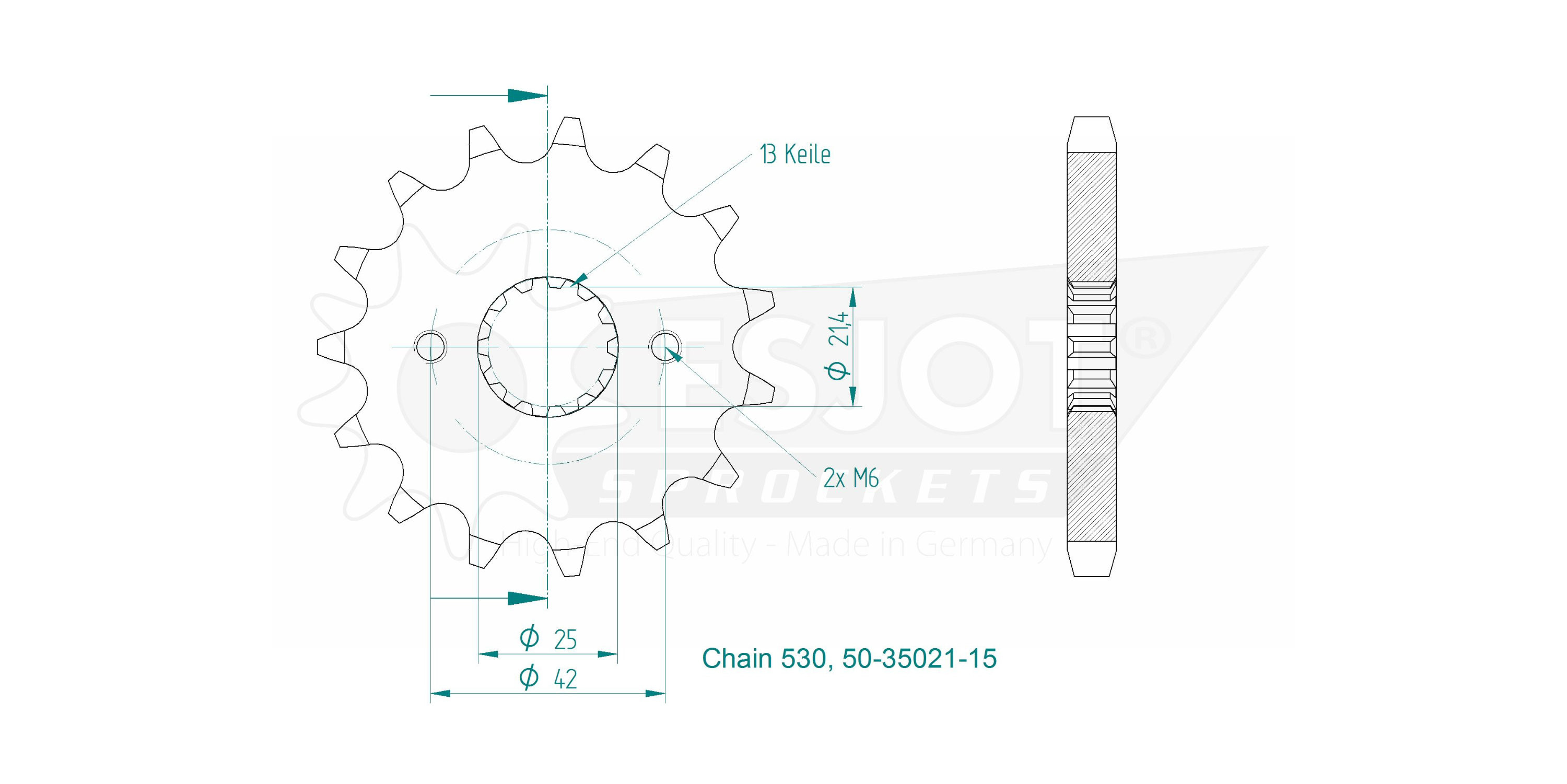 Wyprodukowano w Niemczech: Wszystkie zębatki ESJOT są produkowane w Niemczech, co gwarantuje przestrzeganie najwyższych standardów inżynierii i kontroli jakości.