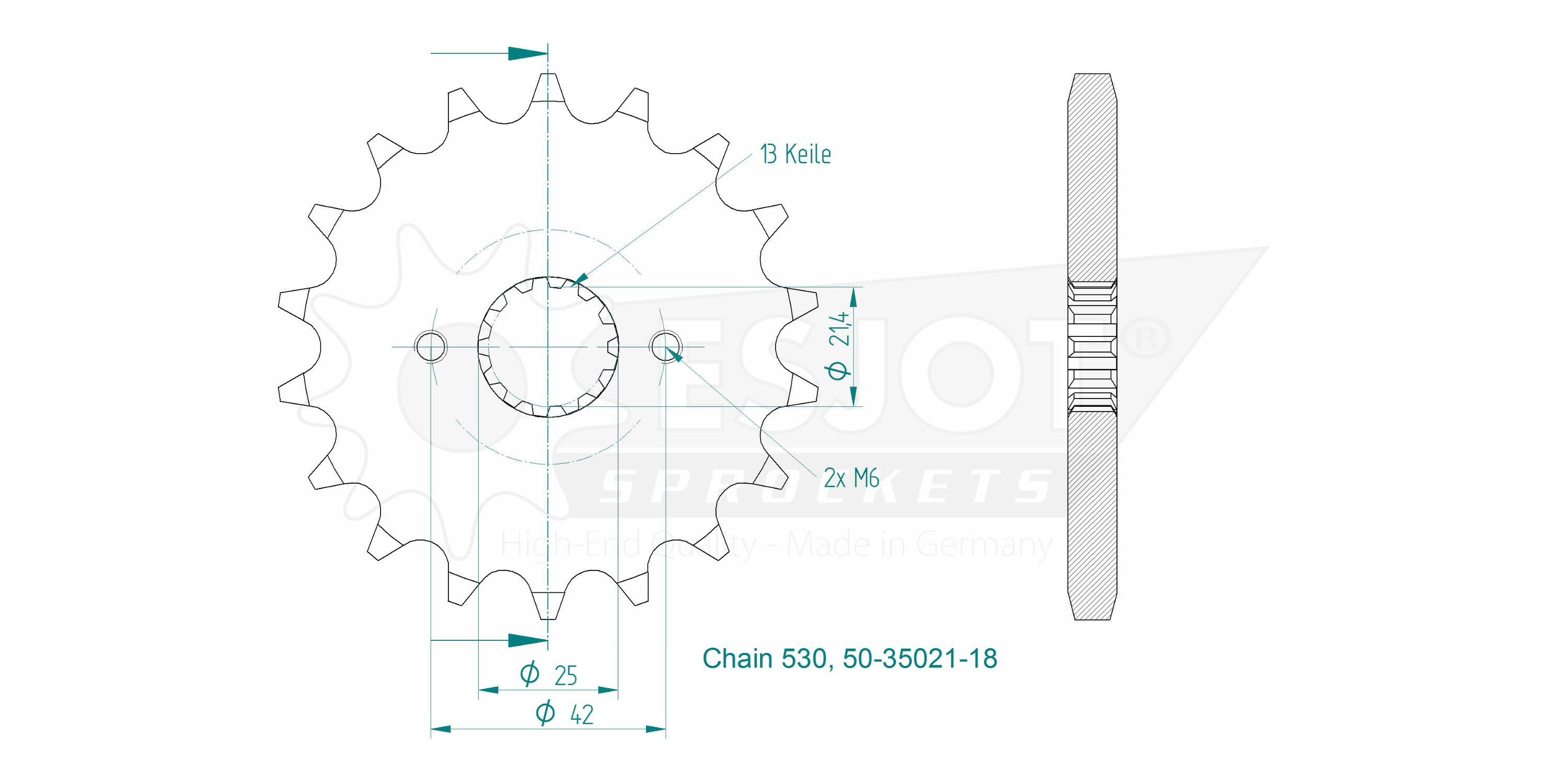 Wyprodukowano w Niemczech: Wszystkie zębatki ESJOT są produkowane w Niemczech, co gwarantuje przestrzeganie najwyższych standardów inżynierii i kontroli jakości.