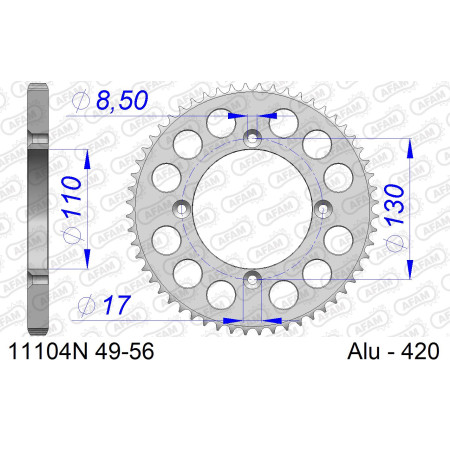 AFAM Zębatka tylna aluminiowa do łańcucha 420 kod 11104N-55