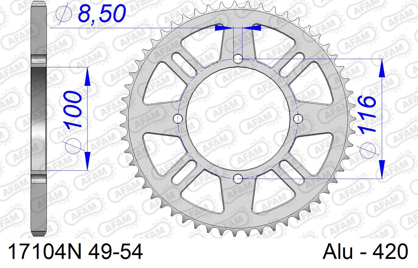 AFAM Zębatka tylna aluminiowa do łańcucha 420 kod 17104N-52