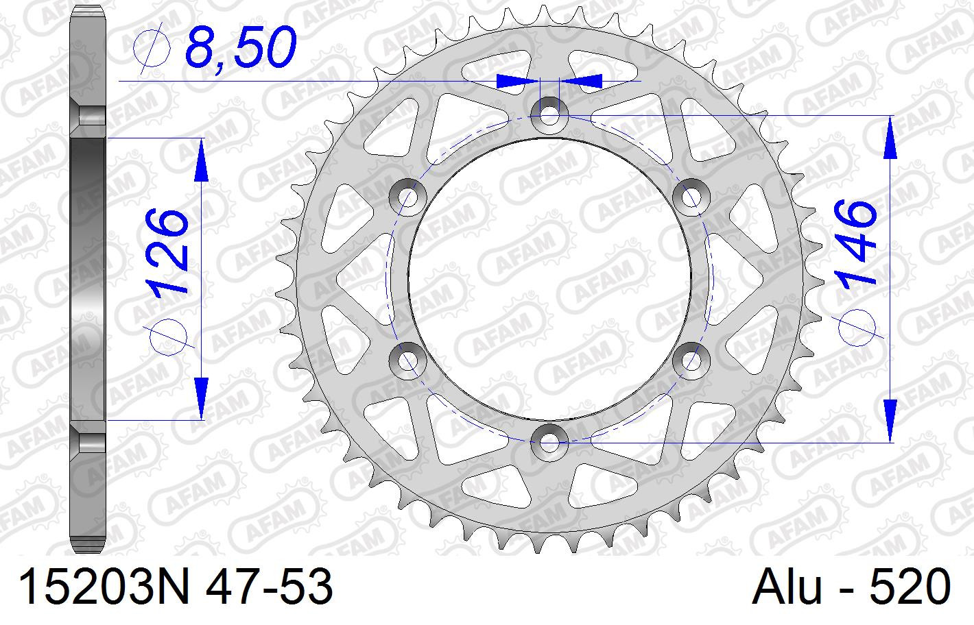 AFAM Zębatka tylna aluminiowa do łańcucha 520 kod 15203N-52