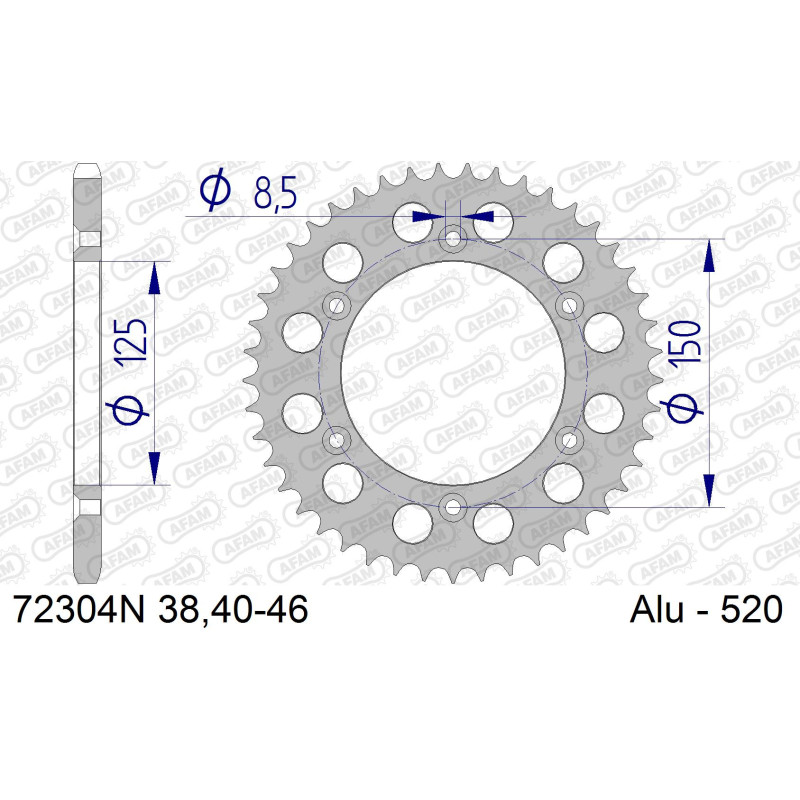 AFAM Zębatka tylna aluminiowa do łańcucha 520 kod 72304N-44