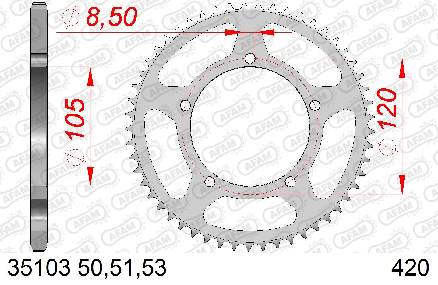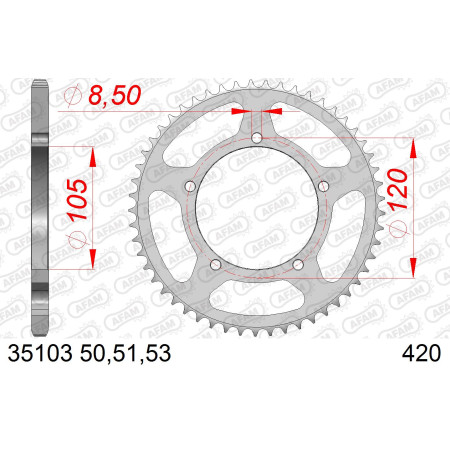 AFAM Zębatka tylna stalowa do łańcucha 420 kod 35103-51