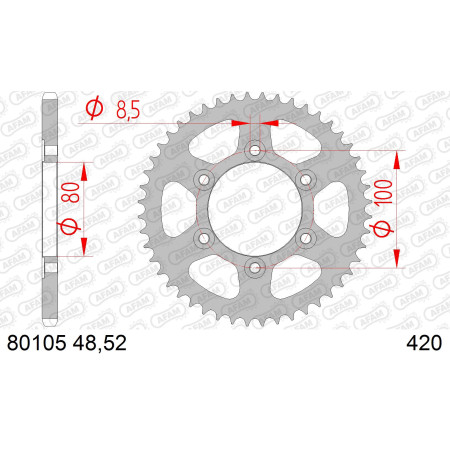 Zębatka tylna AFAM 420, 45 zębów, wykonana z hartowanej stali C45N. Precyzja CNC, trwałość OEM, produkcja belgijska.