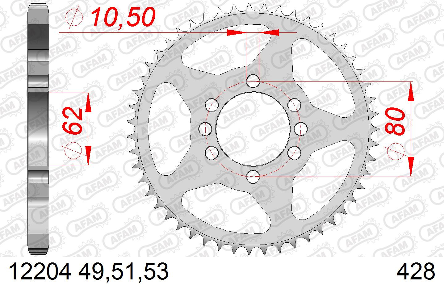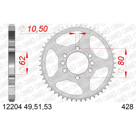 AFAM Zębatka tylna stalowa do łańcucha 428 kod 12204-53
