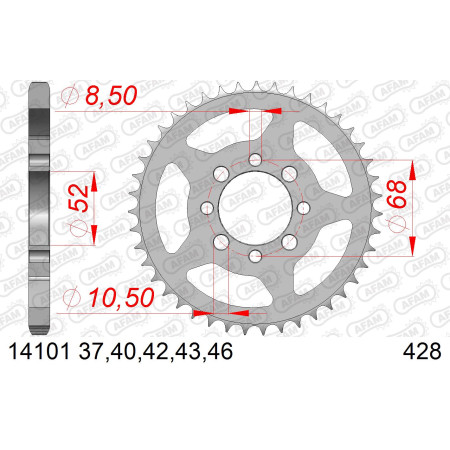 AFAM Zębatka tylna stalowa do łańcucha 428 kod 14101-46
