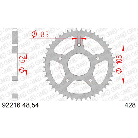 AFAM Zębatka tylna stalowa do łańcucha 428 kod 92216-54