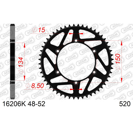 AFAM Zębatka tylna stalowa do łańcucha 520 BLACK kod 16206K-48