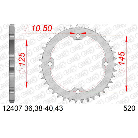 AFAM Zębatka tylna stalowa do łańcucha 520 kod 12407-43