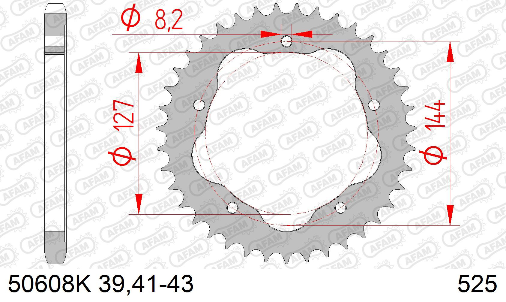 AFAM Zębatka tylna stalowa do łańcucha 525 BLACK kod 50608K-42