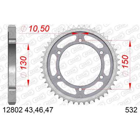 AFAM Zębatka tylna stalowa do łańcucha 532 kod 12802-47