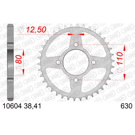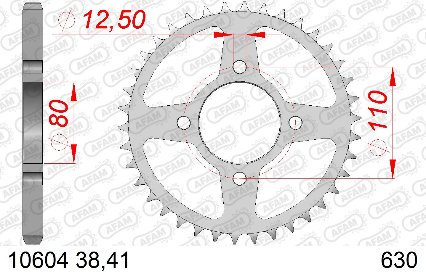 Zębatka tylna AFAM 420, 38 zębów, wykonana z hartowanej stali C45N. Precyzja CNC, trwałość OEM, produkcja belgijska.