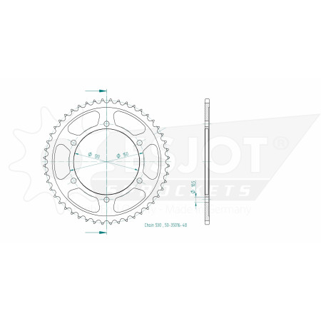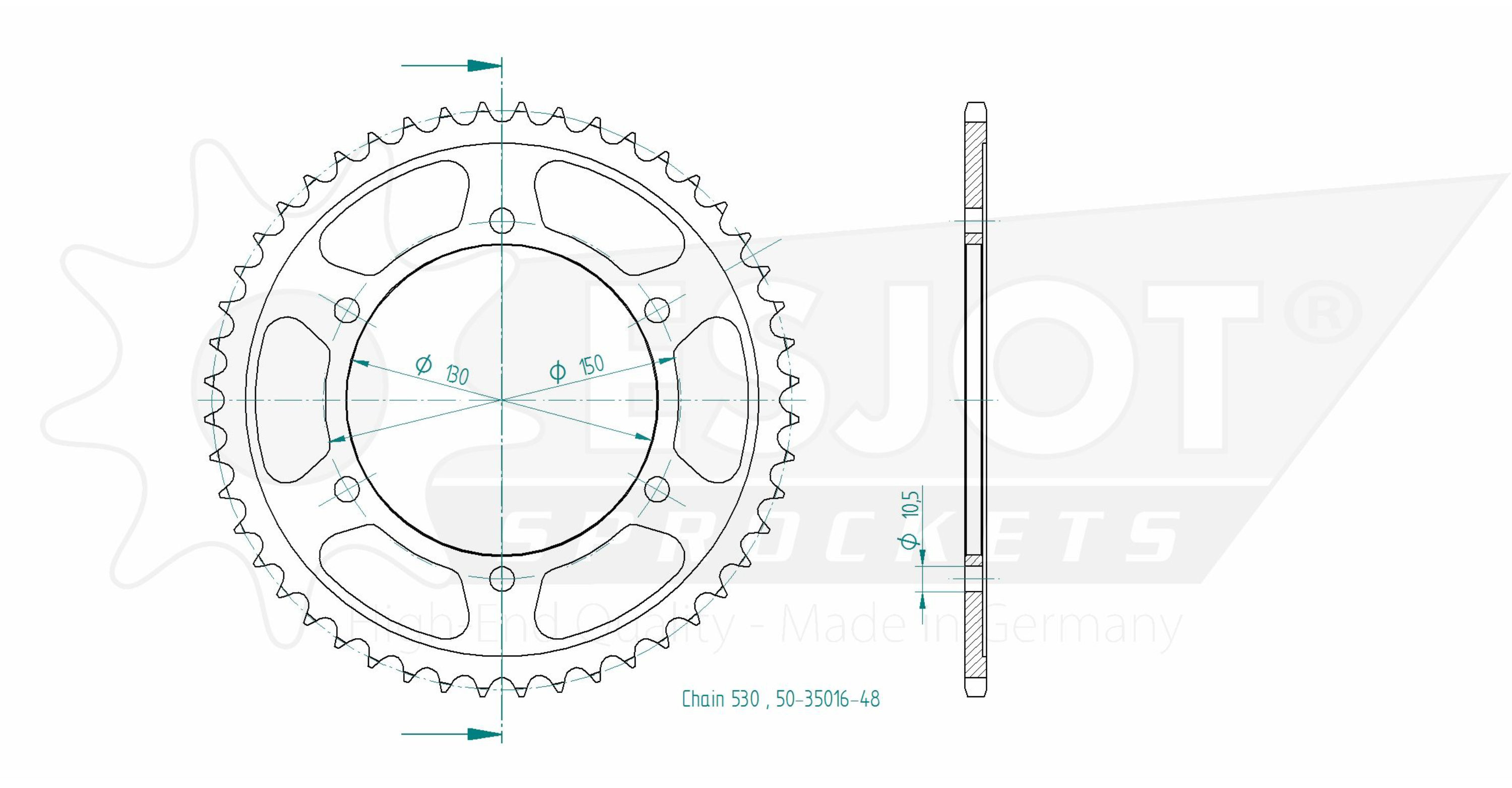 Zębatka ESJOT stalowa tylna (do łańcucha 530) - ilość zębów 48 |50-35016-48